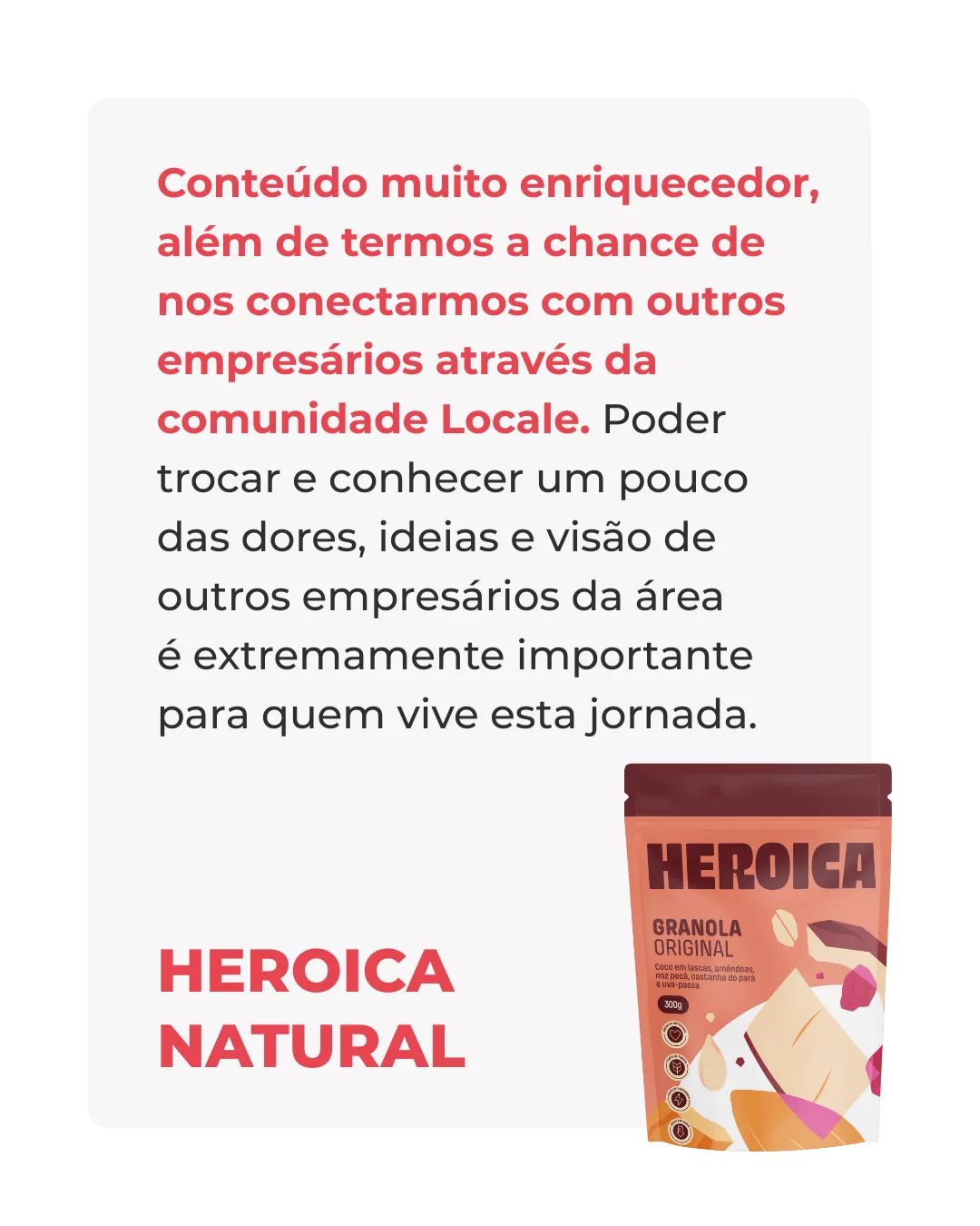 Sua jornada empreendedora não precisa ser solitária! Ao fazer parte da Academia Local.e, você também terá acesso ao nosso grupo com mais de 350 empreendedores de todo o Brasil que diariamente trocam boas práticas, desafios, contatos, informações e muito conhecimento!