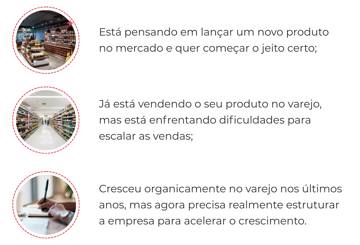 Ensinamos empreendedores de marcas de alimentos e bebidas a crescer vendendo para os supermercados.